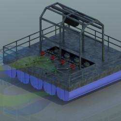 1. понтон с рамой для установки четырех погружных насосов, со стальным настилом и боковой обшивкой;