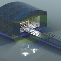 Плавучий ангар предназначен для защиты погружных насосов от воздействия внешних негативных факторов. Оборудован средствами подогрева воздуха.