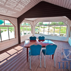 установив на понтонной площадке шатер или навес, вы сможете организовать практичное и очень оригинальное место для проведения любых мероприятий – от банкета до свадьбы