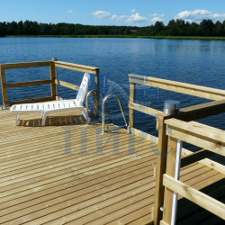 удобные лесенки облегчают спуск в воду, теплый деревянный настил особенно хорош для детей, надежные деревянные перила обеспечат безопасность