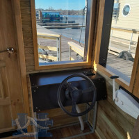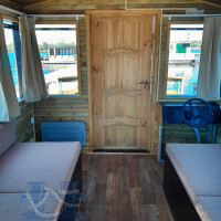 Уютная жилая надстройка позволяет с комфортом разместиться двум-трем пассажирам, в ней имеется капитанское кресло со штурвалом, спальное место, место для отдыха. Возможно устройство санузла или камбуза. На корме обустроена прогулочная палуба с рундуками.
