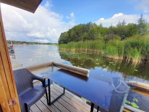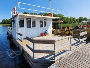 Большой хаусбот с открытой верхней палубой на 6-8 человек.