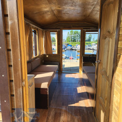 Основное преимущество жизни в плавдоме – изолированность от внешнего мира. Здесь нет соседей не только сверху и снизу, здесь, в отличие от загородного коттеджа, нет соседей даже сбоку, а значит – вашему отдыху никто не помешает. Вас не будут окружать чужие окна и заборы – только ровная гладь воды и небо. А еще здесь не будет проезжих дорог, пыли и мусора от них, и машин, которые станут будить вас по ночам.