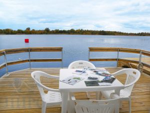 Дополнительным элементом понтона является настил. Он может покрывать как всю палубу понтонной площадки, так и ее отдельные участки. В качестве основного материала палубного настила компания Маринпласт использует импрегнированную сосновую доску, которая пропитана антисептиком под давлением. Такой настил можно не красить, при этом он отлично противостоит постоянной влажности, а также выдерживает резкие перепады температуры, снежный и ледяной покров, сибирские морозы и южное солнце.