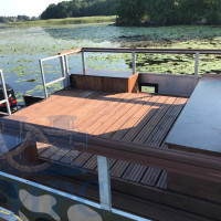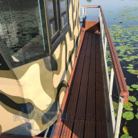 По борту понтона установлена демпферная система из вакуумно-импрегнированной строганной сосновой доски. Для обеспечения безопасности персонала по периметру катамарана установлено перильное ограждение из профильной трубы с гальваническим покрытием заводского исполнения.