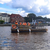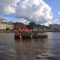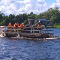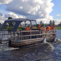 Маломерное моторное судно Остров-19 представляет собой понтонный катер для проведения различных работ на воде, а также перевозки пассажиров, техники и грузов.