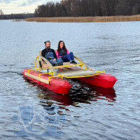Достаточно купить катамаран и разместить его на акватории — вам больше не придется прилагать усилий, вращая педали или держась за двигатель. Просто активируйте устройство кнопкой и наслаждайтесь поездкой!