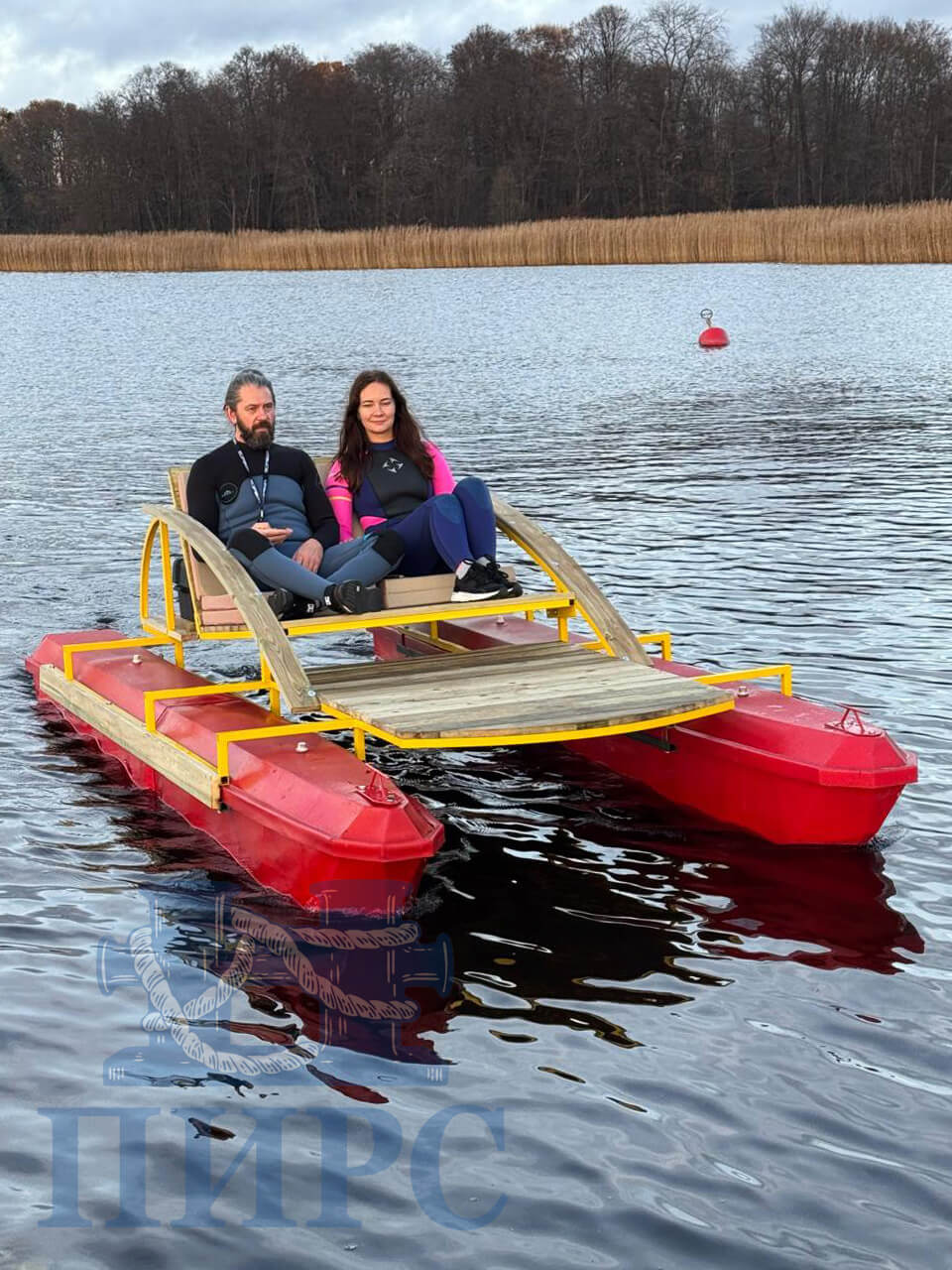 Уникальная разработка инженеров «Маринпласт» — моторный катамаран «AquaCat-4.2» для водных прогулок.