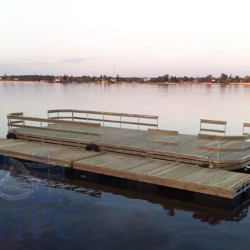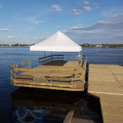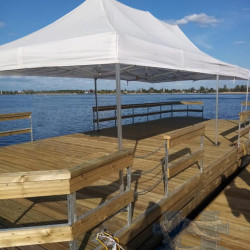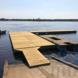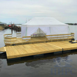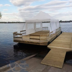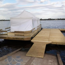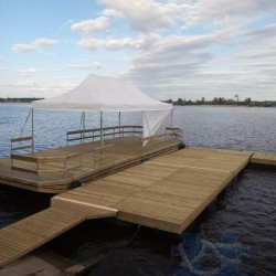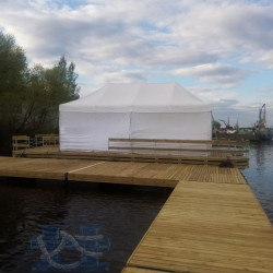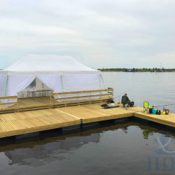 - Понтонная площадка Остров-90 (стальная рама + настил из импрегнированной доски) с тентовым шатром.