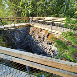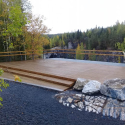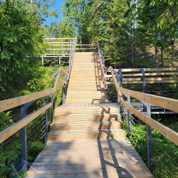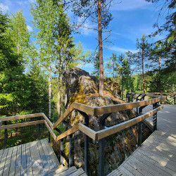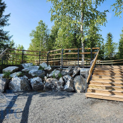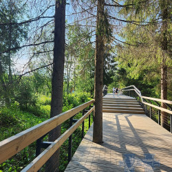 Масштабный проект был подготовлен для парка «Рускеала» в Карелии. Была разработана система пешеходных трасс, состоящих из гравийных и деревянных пешеходных дорожек, подъемов и спусков, а также лесенок и смотровых площадок. Подробнее о проекте: Оборудование для Горного парка Рускеала
