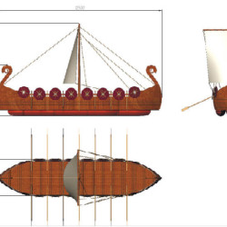Авторский проект «Драккар викингов» представляет собой моторное маломерное судно с габаритными размерами 12,5х2,7м с установленной на него надстройкой, имитирующей ладью викингов.
