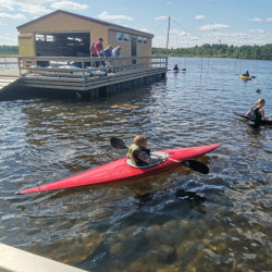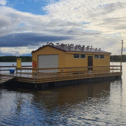 Для хранения спортивного снаряжения членов туристического клуба «ВОДИной» при поддержке профсоюзной организации работников Кольской АЭС был спроектирован и построен плавучий эллинг с понтонной дорожкой. Он установлен на акватории озера Пинозеро в городе Полярные зори (Мурманская область) и предназначен для круглогодичного размещения каяков, байдарок, досок для SUP-серфинга, весел и спортивной одежды.