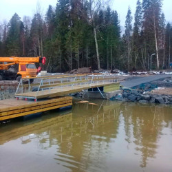 - монтаж основного оборудования причального комплекса: понтонов, причалов-разделителей, трапа, кнехтов;
