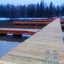 Палубный настил выполнен из импрегнированной доски хвойных пород (сосна). Палубная доска связана в легкосъемные щиты, для обеспечения доступа к якорной системе.