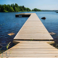 Палубный настил выполнен из импрегнированной террасной доски (сосна) толщиной 28 мм. и нарезкой от скольжения. Палубная доска связана в легкосъемные щиты, для обеспечения доступа к якорной системе.