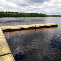 Для турбазы АО «КБСМ» на реке Вуоксе в Выборгском районе Ленинградской области произведены демонтаж старого причала, утилизация демонтированного оборудования, а затем установлен новый понтонный причал для швартовки лодок и катеров.