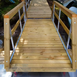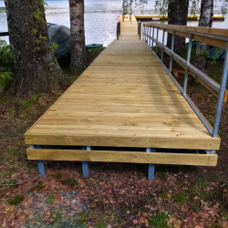 Палубный настил выполнен из импрегнированной террасной доски (сосна) толщиной 28 мм. и нарезкой от скольжения. Палубная доска связана в легкосъемные щиты, для обеспечения доступа к якорной системе.