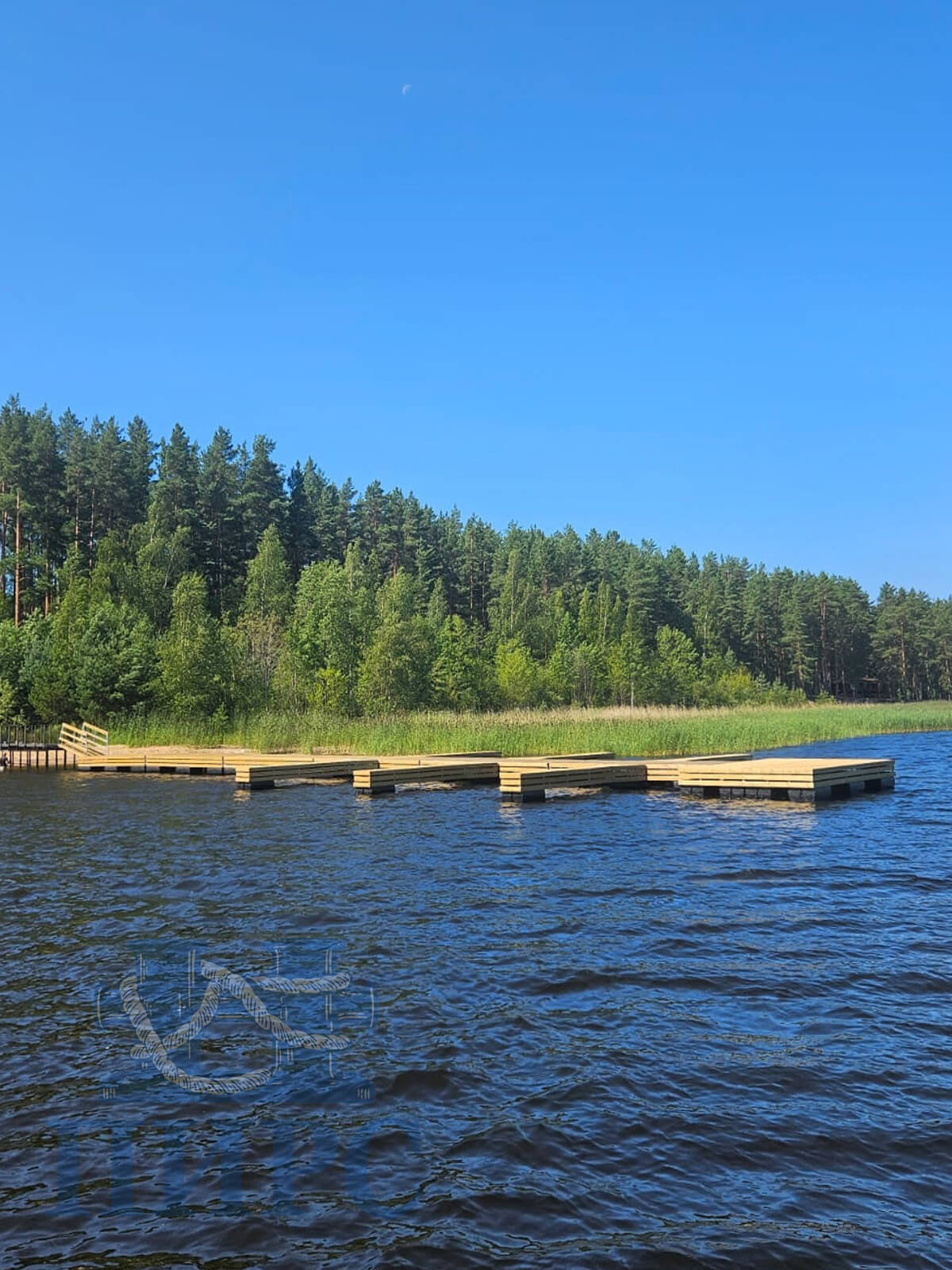 По заказу частного лица на реке Вуоксе в Ленинградской области был установлен пирс из понтонов.
