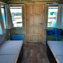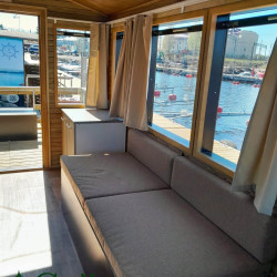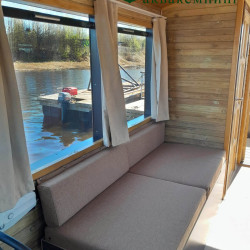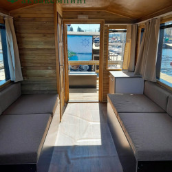 Каждый дом оснащен двумя спальными местами, санузлом, кухонным уголком, местами для хранения. На носу и на корме имеются открытые палубы для установки шезлонгов или столиков для завтрака. На борту организована подача воды с берега.