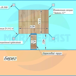 Конструкция понтонов и трапа представляет собой стальную оцинкованную в заводских условиях раму с безопасным деревянным настилом с нарезкой противоскольжения. Понтоны установлены на полиэтиленовые модули плавучести (поплавки), надежно закрепленные внутри рамы.