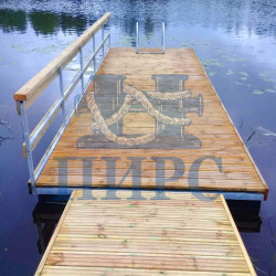 Дополнительно на понтоне установлено перильное ограждение и стальная лесенка для спуска в воду.
