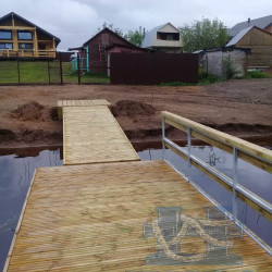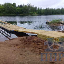 Небольшой и недорогой понтон для частного заказчика из Подмосковья, предназначенный для купания, ловли рыбы и отдыха. Также понтон можно использовать как причал для швартовки лодок, катамаранов и катеров.