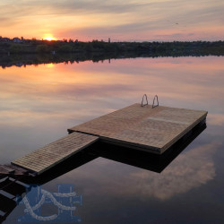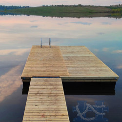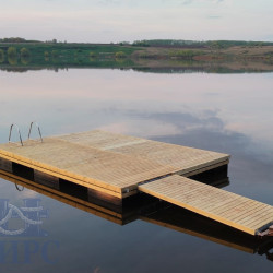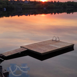 Площадка составлена из двух понтонов проекта Затон-12, имеет удобную лесенку для спуска в воду.