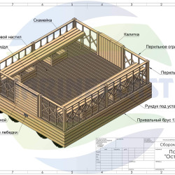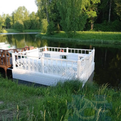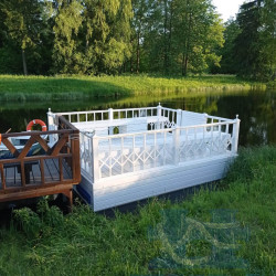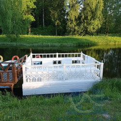 Палубный настил выполнен из импрегнированной террасной доски (сосна) толщиной 28 мм. и нарезкой от скольжения. Палубная доска связана в легкосъемные щиты, для обеспечения доступа к якорной системе.