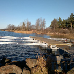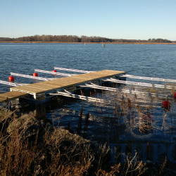 Для частного заказчика из Ленинградской области был спроектирован и построен комплекс причальных сооружений для стоянки катеров. Комплекс состоит из понтона проекта «Залив» и восьми балок-разделителей, установленных на опорный буй, и рассчитан на комфортную и безопасную стоянку для 6 катеров.