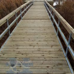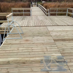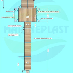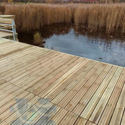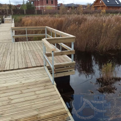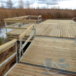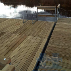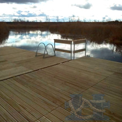 Палубный настил выполнен из импрегнированной террасной доски (сосна) толщиной 28 мм. и нарезкой от скольжения. Палубная доска связана в легкосъемные щиты, для обеспечения доступа к якорной системе.