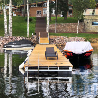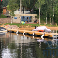 Для загородного клуба на озере в ленинградской области установлен лодочный причал для швартовки плавсредств и купания.