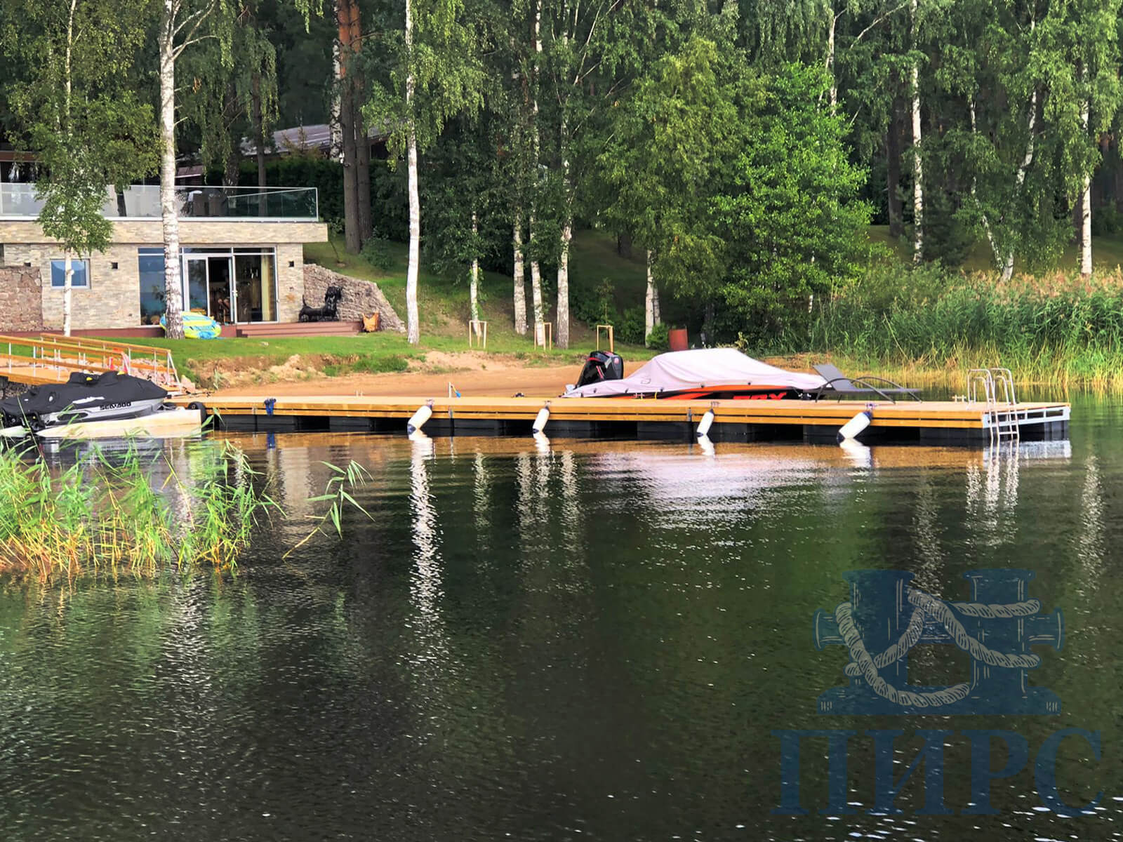 Для загородного клуба на озере в ленинградской области установлен лодочный причал для швартовки плавсредств и купания.