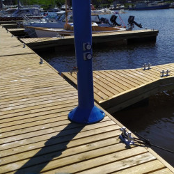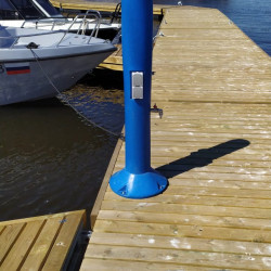 Специально для яхт-клуба разработана сервисная колонка СК-1 в следующей комплектации: 4 розетки, 1 кран холодной воды, светильник. Это оборудование предоставляет яхтсменам доступ к системе электро- и водоснабжения яхт-клуба, а также обеспечивает освещение причалов в темное время суток.