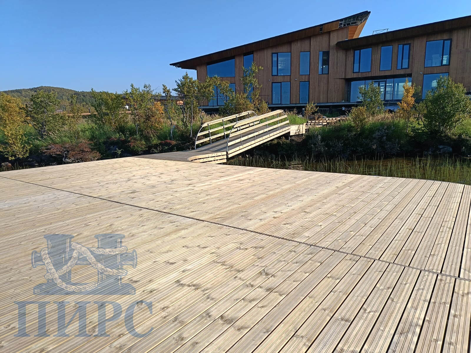 Понтонная площадка для организации места рекреации и отдыха обеспечивает безопасный доступ посетителей парка или заказника к водоему без вреда для его флоры и фауны.