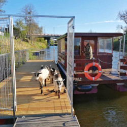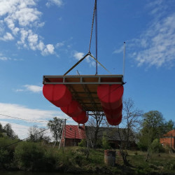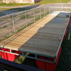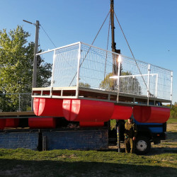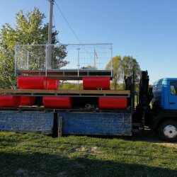 Для Центра развития активного отдыха и туризма «Ферма Тюниных» в Калининградской области мы поставили 10 модулей плавучести для пристани. Заказчики своими руками построили новый причал длиной в 24 метра на реке Лаве, у которого швартуется прогулочный кораблик.