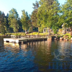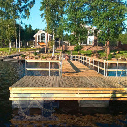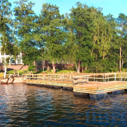 Понтонная пристань с площадкой для отдыха и лесенкой для спуска в воду была спроектирована и установлена для частного заказчика на Карельском перешейке (Ленинградская область).