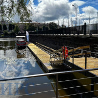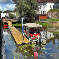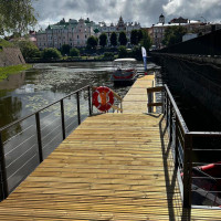 Для швартовки прогулочных катамаранов, посадки и высадки пассажиров у Замка в историческом центре города Выборга была спроектирована и установлена пассажирская пристань с береговой зоной ожидания.