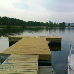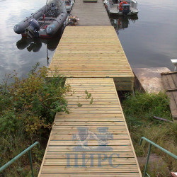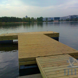Палубный настил выполнен из импрегнированной террасной доски (сосна) толщиной 28 мм. и нарезкой от скольжения. Палубная доска связана в легкосъемные щиты, для обеспечения доступа к якорной системе.