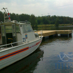 Для Московской городской поисково-спасательной службы на водных объектах нашей компанией проведена реконструкция причала для катеров. Была установлена новая причальная секция из двух понтонов проекта «Залив» в форме буквы Т, заменена часть старого причала и оборудован трап для выхода на берег.