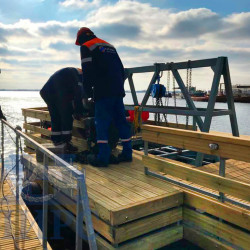 Особенностью конструкции понтона является возможность закрепления на бортах дополнительных площадок для облегчения работы персонала и оборудования.